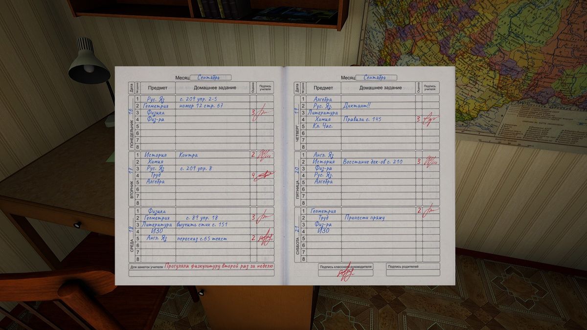 Теперь концепт игры соответствовал всем вышеперечисленным пунктам ограничений. Но при таких условиях геймплей вряд ли мог похвастаться разнообразием. Как сделать игру интересной в рамках ограниченного пространства? Идею с паззлами Владимир отбросил сразу: лично ему не очень импонировала эта механика, и он считал, что большинство игроков все равно посмотрят решения головоломок на YouTube. В итоге основой геймплея стали ежедневные хлопоты, которыми человек обычно занимается дома: уборка, мытье посуды, чтение и т. д. Чтобы рутина была интересной, на помощь пришли нарративные элементы.