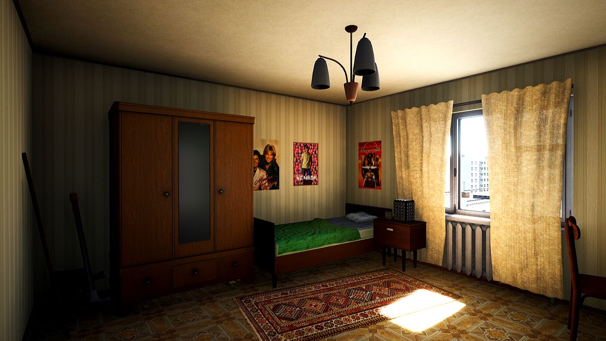 Сопоставив все эти особенности, разработчик понял, что место действия будет достаточно изолировано. Под это условие идеально подошла квартира: локации комнат не требуют большого количества ассетов, к тому же интересная история может произойти даже в четырех стенах.